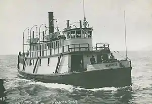 Nahcotta was a steamboat operated from 1898 to 1928 on a route from Astoria, Oregon to Ilwaco, Washington, and then, from 1908 on, from Astoria to Megler, Washington. Nahcotta ran on the same route for its entire service life, and for much of that time was commanded by Capt. Tom Parker, who started his marine career as a deckhand and who had only three months of formal education.