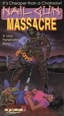 Nail Gun Massacre is a 1980s American rape-and-revenge slasher film directed by Terry Lofton and Bill Leslie. A young doctor and a sheriff seek a killer in a motorcycle helmet who kills locals with a nail gun.