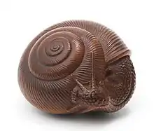 A snail carved in wood by Naitō Toyomasa