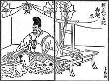 Chikayoshi started off as a low-ranking court official.[2] As a court official he served as Vice-Minister of Saiin Palace, Vice-Governor of Mino Province, Senior Assistant to Minister of Ceremonial Affairs and Head of Bureau of Imperial Palace Cleaning, and held the court rank of Senior Fifth Rank, Lower Grade.[1]