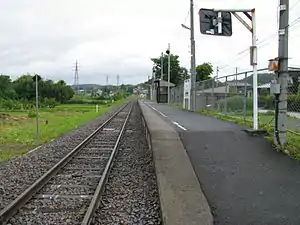 The station has one side platform serving a single bi-directional track. The station is unattended. There is no station building, but only a small waiting booth on the platform.
