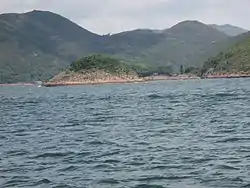 ![]() The islet of Nam Fung Chau is visible in the centre left. The land in the background is the southwestern coast of High Island, a former island of Sai Kung District, Hong Kong. | |