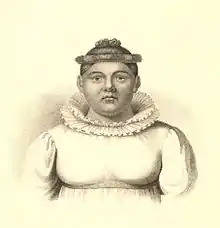 ![]() Portrait of Nāmāhāna Piʻia as "Queen of the Sandwich Islands", published in Otto von Kotzebue's A New Voyage Around the World, 1830. | |