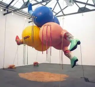In her first two decades, Davidson worked primarily in painting,[37] frottage drawing,[38][25][39] and with textiles.[40][41] In the early 1990s, she began experimenting with latex weather balloons, and by 1993 had begun showing the feminized, anthropomorphic sculptures for which she became known.[15][42][26] Her exhibitions are traditional in the sense that they contain discreet works, but she often displays the works in tableaux or as part of an immersive environment, in the manner of installation art.[12]