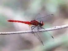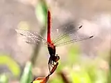 Nannodiplax rubra, commonly called the pygmy percher,[4] is a species of dragonfly in the monotypic genus Nannodiplax.[5] Its distribution seems to be limited to Australia and New Guinea.[4] They are tiny dragonflies (wingspan 40 mm, length 25 mm) with a bright red abdomen and clear wings. They are found near a wide variety of rivers and streams. The Australian distribution ranges from Broome, Western Australia via the north and east to around Coffs Harbour, New South Wales.[4] The taxon has not yet been assessed for the IUCN Red List, but it is listed in the Catalogue of Life.