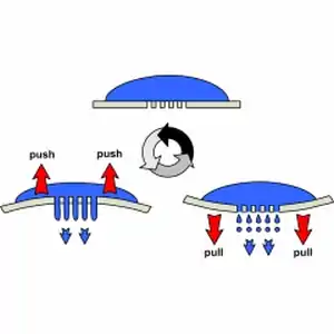 One of the three new technologies that makes "nano" spray drying possible is the spray head. A piezoelectric system precisely vibrates a fine mesh. Vibration produces fine droplets with a narrow size distribution.
