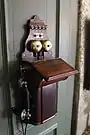 Nantclwyd House was the first house on Castle Street to have a telephone installed. The Rev. Thomas Pritchard lived here from 1907 to 1917 – he was the Rector of Llanfwrog Church. The wooden case held two batteries that worked the microphone. By turning the handle of the Magneto a bell would ring in the exchange and the person would tell the operator which number they wanted to be connected to. Electricity arrived at Nantclwyd at around 1914, provided by the Ruthin Electricity Supply Company.
