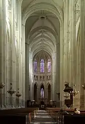 Nantes Cathedral, or the Cathedral of St. Peter and St. Paul of Nantes (French: Cathédrale Saint-Pierre-et-Saint-Paul de Nantes), is a Roman Catholic Gothic cathedral located in Nantes, Pays de la Loire, France. Construction began in 1434, on the site of a Romanesque cathedral, and took 457 years to finish in 1891. It has been listed since 1862 as a monument historique by the French Ministry of Culture.[1]