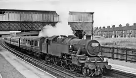 The town was initially considered as potential calling point for the Grand Junction Railway route between London, Birmingham and Manchester/Liverpool, but opposition from coaching and canal interests therein led to the Grand Junction being routed through Crewe instead.[1] The Crewe and Shrewsbury Railway would end up being the first route into the town – authorised by Parliament in 1852, it was eventually opened in September 1858 and was operated by the London and North Western Railway. This subsequently became part of a busy through route between the north west of England and South Wales (the modern day Welsh Marches Line). The Nantwich and Market Drayton Railway linking the titular towns opened five years later, making the station a junction in the process – known locally as the "Gingerbread Line" (Market Drayton being renown for the production of said confectionery), it was later extended to Wellington and officially became part of the Great Western Railway system in 1897. This line was a busy freight artery but in pre-grouping days was also used by the GWR to run expresses all the way to Manchester London Road (albeit using running rights over the LNWR north of Nantwich).