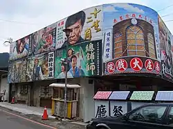 The movie theater building is decorated with various movie posters around it.[2] It shows old movies and serves Hakka cuisines.[3]