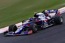 After winning the GT500 and Super Formula titles in 2018, Yamamoto had accumulated the requisite 40 points required to attain an FIA Super License and compete in Formula One.[9] Yamamoto would get his first chance to drive a Formula One car in competition, when he drove for Scuderia Toro Rosso-Honda in the first practice session of the 2019 Japanese Grand Prix. He completed the most laps in the session and set a fastest lap time just 0.1s off the pace of regular driver Daniil Kvyat.[10][11] This participation made him the first Japanese driver to drive during a Formula One Grand Prix session since Kamui Kobayashi in 2014.[12]