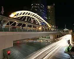 Naradhiwas Rajanagarindra Road (Thai: ถนนนราธิวาสราชนครินทร์) is a road in central Bangkok. It is a main transport route in the area of Bang Rak, Sathon and Yan Nawa districts. It's an eight-lane reinforced concrete road in the form of boulevard with a width of 60 m, a distance of 5.115 km (3.1783 mi). Starting from Surawong road in Suriyawong sub-district, Bang Rak district and heading southeast parallel to Khlong Chong Nonsi (Chong Nonsi canal), then cut with Si Lom road in the Si Lom sub-district, Bang Rak district, then cut with Sathon road in the area of Sathon district. The road in this portion is a boundary line between Thung Maha Mek and Yan Nawa sub-districts of Sathon district. Therefrom cut with Chan road in the area of Chong Nonsi sub-district, Yan Nawa district and cut with Ratchadaphisek road until end of convergence with Rama III road at Rama III - Naradhiwas junction or Chong Nonsi junction.