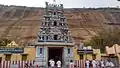 The Thiruvilayadal Purana, written by Perumbatta Puliyur Nambi and later amended by Paranjothi Munivar, says that the Chola king, who could not win the battle against the Pandya ruler, sought the help of Jains. They created a giant elephant using their mystic powers and directed it to kill the Pandya king and destroy his capital. But the Pandya prayed to Lord Siva to save him and his capital. The Lord sent to him the "Narasinga Asthram" (the eight lettered word Namonarayana), which turned the elephant into a hill. To commemorate this event, a stone elephant was installed in Madurai near the Vaigai facing the north, which is found near the Yanaikkal bridge even today. Inscriptions in the cave temple say that Maran Kari, the minister of the Pandya king, started the construction of the temple in 770 A.D., which remained unfinished, either due to his death or due to some other calamity, and was completed by his brother Maran Eyinan later. He also built the Muka Mandapa and consecrated the temple.[2]