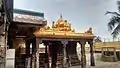 The foot of the hill, where the Narasimha temple is located is known as Narasingam or Hasthigiri or Gajagiri. There one may find the Maha Mandapam, Garuda Mandapam and Mukha Mandapam of the Pandya period. The shrine of the Goddess Narasingavalli faces south, at the entrance. Inscriptions say that there was also an agraharam for Vedic Brahmins, but there is no trace of it now. The temple bustles with activity during the Narasimha Jayanthi festival, and on Masi Maham day, when Sri Kalamega Perumal of Thirumohur visits this place for the Gajendra Moksha festival. The temple is unique for its utsava icon of Narasimha in a standing posture with the Sudarsana and Panchajanya in His upper two hands while the left lower hand holds the Gathai (club weapon) and the right is in the Abhaya Hastha posture (blessing pose).[2]
