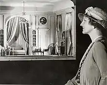 The first known exhibit of her work occurred in 1932.[1] The high unemployment of the Great Depression made it possible for her to hire workers with highly specialized skills.[1] Most of her exhibitions were private, held to raise funds for local charitable causes, but at the Century of Progress Exposition in 1933, Thorne's works were publicly exhibited in a dedicated building.[3] Subsequent public exhibits included the Art Institute of Chicago and the New York World's Fair of 1940. In 1936, she received a request to make a miniature library depicting a room at Windsor Castle, to mark the planned coronation of Edward VIII; although the coronation never occurred, she delivered the room and it was displayed at the Victoria and Albert Museum.[4]