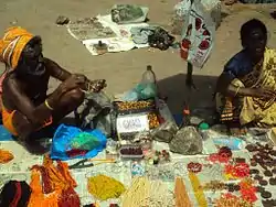 Each Narikurava clan has a bundle of clothes called sami-mootai meaning "God's bundle".[8] It is filled with blood of animals sacrificed by the Narikuravas and clothes dipped in them. The sami-mootai of one clan must not be touched by members of another clan. On the death of the head of the family, his eldest son inherits the sami-mootai.[8] The prestige a clan-leader holds depends on the antiquity of his sami-mootai.