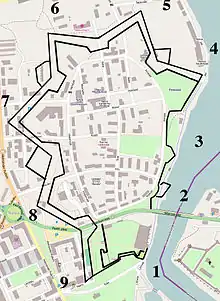 Narva fortress and bastions (numbers 1-9)