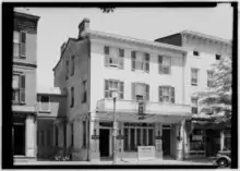 The inn's first building, constructed in 1756 using brick imported from Holland, was built as the home of Judge Thomas Leonard, an eminent local citizen who had helped woo The College of New Jersey (now Princeton University) to relocate to Princeton.[2] On his death in 1769, the house was turned into a hotel by Christopher Beekman, who gave it the name College Inn. The Inn quickly became the center of town life, and with its location on the King's Highway, at the midpoint between New York City and Philadelphia, played host to many of the notable figures of colonial America, including Paul Revere, Robert Morris, and Thomas Paine.[3]