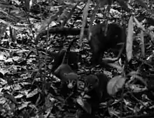 Like other procyonids,[7] coatis are omnivores. Their diet consists largely of insects (including their larvae), spiders and other invertebrates as well as the occasional small vertebrate discovered while energetically foraging, with their sensitive noses to the ground, in forest leaf litter. On Barro Colorado Island, Panama, where they have been studied in greatest detail,[8][9] they supplement this diet with copious amounts of fruit as it becomes available seasonally from favored trees, such as figs (Ficus insipida) and hog plums (Spondias mombin).