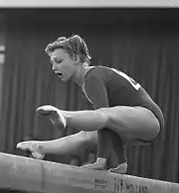 At the 1968 Olympics, Kuchinskaya was arguably the most popular member of the Soviet team. She placed third in the all-around, behind Věra Čáslavská and her teammate Zinaida Voronina; she also shared in the team gold medal and won the balance beam title and a bronze on the floor exercise. She was serenaded with a folk song, "Natalie," during her stay in Mexico City.[2][4][5]