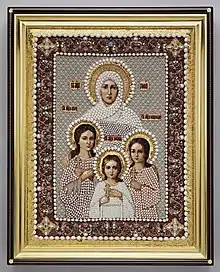 On March 15, 2012, Valevskaya supervised the opening of embroidered Eastern Orthodox icons exhibition at the Museum of Cathedral of Christ the Saviour in Moscow.[2] The exhibition consisted of works by an art studio created by Natalia Gorkovenko. In the mid-2000s Gorkovenko and her apprentices started the revival of an ancient Russian tradition of religious goldwork and gem embroidery. Every icon required several women working on it for 3 to 7 months. The ready icons have been framed in modern molding or in restored ancient kiots (icon cases). The studio hires an antiquer who restores wooden kiots and gold-plated casings.