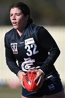 Natalie Plane (born 4 August 1996) is an Australian rules footballer playing for the Carlton Football Club in the AFL Women's competition (AFLW). She was drafted by Carlton with the club's eleventh selection and the eighty third overall in the 2016 AFL Women's draft.[1] She made her debut in Round 1, 2017, in the club and the league's inaugural match at Ikon Park against Collingwood.[2] She suffered a season-ending ankle injury in the match however, and would not return to AFLW football that year.[3] It was revealed Plane signed a one year contract extension with Carlton on 10 June 2021.[4]
