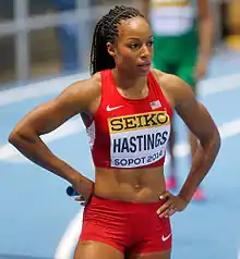 In 2013 Hastings won the USATF 400 meters outdoor title in 49.94 on 22 June 2013,[7] thus making the US Track and Field Team for the 2013 World Championships in Athletics in Moscow, where she finished in fourth place.