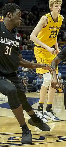 ![]() Mensah (left) with San Diego State in 2018 | |