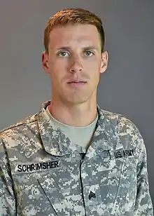 Schrimsher enlisted in the United States Army in January 2013 as an active duty motor transport operator (88M).[1] He currently holds the rank of sergeant and is a part of the World Class Athlete program, an army initiative which allows soldiers to compete and train in their respective sports with the goal of competing in the Olympics.[6] He is currently stationed at Fort Carson, Colorado.[7]