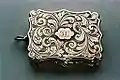 Nathaniel Mills the Elder (1746–1843) was a partner in Mills & Langston, Northwood Jewellers when he registered his first mark in 1803.[1] In 1825, he registered his well-known now punch mark 'N.M' within a rectangle at the Birmingham Assay Office and concentrated on working with silver on his own.[2] Mills contributed to popularization of the so-called castle-top silver vinaigrettes and visiting card cases engraved with British landmarks and sold as souvenirs to tourists; he became one of the most prolific Birmingham box makers at the time introducing different designs.[3][4][5]
