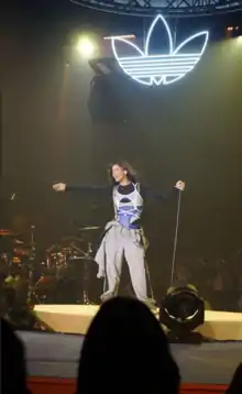 In 2021, the music video for her next single "Delito", directed by Agustín Puente, met praise from critics.[35] The song became a top 30 hit both in Argentina and Spain and was certified Gold in the latter one.[36] Later in March, she received critical acclaim for her performance of "La Violetera" at the 35th Goya Awards.[37] That same month, she collaborated with Karol G on "Gato Malo", included in the Colombian's third studio album and sparked rumors about a possible future collaboration with J Balvin.[38][39] In May, the singer embarked on her first major tour in Spain, which lasted until fall comprising 28 concerts.[40] On July 3, 2021, Nathy Peluso announced her first solo single since the release of her debut album, titled "Mafiosa", which peaked at 89 in Spain.[41] In September, she took part in the Spotify Singles song series in which she covered "La Despedida" by Daddy Yankee to critical acclaim.[42] The following month, she collaborated with C. Tangana on his song "Ateo" (which became Peluso's first number one single in Spain) and was featured on Christina Aguilera's "Pa Mis Muchachas" alongside Becky G and Nicki Nicole.[43][44] In December, Peluso reinterprated Camilo Sesto's "Vivir Así es Morir de Amor" to great commercial success.[45]