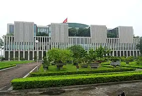 The National Assembly Building of Vietnam (Vietnamese: Tòa nhà Quốc hội Việt Nam), also known as the New Ba Đình Hall (Hội trường Ba Đình mới), is a public building located on Ba Đình Square across from the Ho Chi Minh Mausoleum in Hanoi, Vietnam. Construction started on October 12, 2009 and finished on October 20, 2014. The building is used by the National Assembly of Vietnam for its sessions and other official functions.