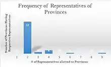 Burkina Faso is divided into 45 electoral provinces within their 13 regions. Each province elects between two and nine representatives, and these representatives are members of political parties. There are 111 members of the National Assembly elected to represent provinces, and 16 nationally elected, totaling 127.[6]