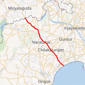 AP/Telangana border (Pondugala), Piduguralla, Narsaraopet, Chilakaluripet, Chirala, Vodarevu [1][2]