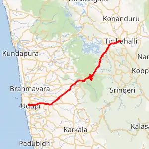 Thirthahalli -Nalur- Agumbe - Hebri - Someshwara - Shivapura - Perdoor - Hiryadka - Parkala, Udupi - Manipal in Udupi - Udupi City - Malpe Harbour (Udupi).[3][4][5]