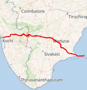 | Primary destinations | Kochi - Adimali - Munnar - Theni - Madurai - Paramakudi -Ramanathapuram- Rameswaram - Dhanushkodi | |||
