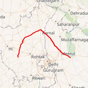 Haryana Border - Shamli - Budhana - Meerut - Garhmukteshwar.[1][2]