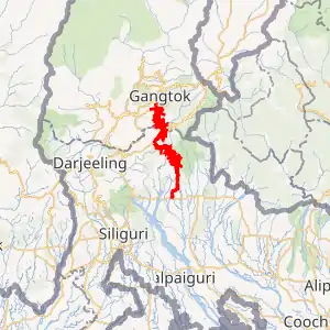 West Bengal Sikkim Reshi Border - Rhenock - Rorathang - Pakyong Airport - Pakyong Bazaar - Ranipool - Gangtok.[1][2][5]