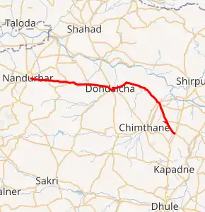 NH753BB connects Nandurbar, Ghotane, Dondaicha, Bamne, Chillane, Kasbe, Shindkheda and Songir in the state of Maharashtra.[1][2]