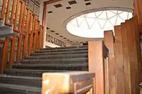 The lobby of the library is used for various cultural events. The floor of the hall is a unique work of diverse mosaic marble stone. The largest dome of the library is the main ornament of the hall's high ceiling, thus providing ample natural lighting.[11]