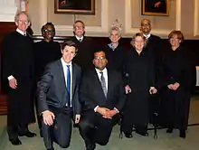 In the years since, the moot court competition has expanded to include competitions in 15 regions throughout the continental United States.[3] The cases argued traditionally focus on a timely issue arising under the United States Constitution, in keeping with the competition's original theme of appellate advocacy. The final national competition continues to be held in New York, and the final argument between the top two teams is judged by a seven-person mock court, including prominent jurists, the president of the New York City Bar Association and the president of the American College of Trial Lawyers.