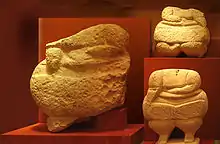 The museum exhibits numerous corpulent statues representing human bodies unearthed from temple excavations, along with phallic representations. Until recently the statues were called Mother Goddesses, Fat Ladies, Deities and Priests among other names, but it is now argued that these statues were probably asexual and represented a human being, irrespective of whether it was male or female.[2] The representations vary in size and shape, with the largest being as tall as 2.7 m and the smallest 4 mm.