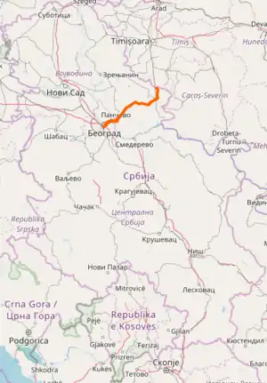 | 2306 | 0.7 km (0.43 mi) | 64.7 km (40.2 mi) | Banatski Karlovac – Deliblato |