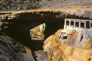 Due to the construction of the Potrerillos Dam to the southwest of the city of Mendoza, they decided to build 10 km of road in a higher zone with two road bridges. This section opened on 23 August 2004.[16] This part of the route generated controversy during the planning period because it passed through an important paleontological deposit.[17]