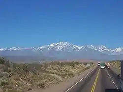 From the eastern part of Mendoza province, the route runs through the Great Plain of Travesia.[41] The plain slopes down towards the Desaguadero River, which is the provincial border with San Luis. In that province there are some higher sections near the Sierras pampeanas. This part doesn't cause any traffic problems because this part of Route 7 is an autopista.