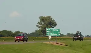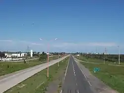 In June 1942, work finished with the paving of the route between Chacabuco and Junín.[2] They built the paved section between Junín and Laboulaye using a slightly different route (a little to the south), which separated the railway from the towns, and sped up the transport on that section. On 2 October 1969, the 67 km between Rufino and Laboulaye was opened, and then the 165 km between Junín and Rufino followed on 28 October of the same year.[3] The paving reached Villa Mercedes in 1975. Here it formed a junction with National Route 8. Route 8 gives the republic's capital access to the east of the country, and has been paved since 1940.[4][5][6]