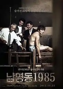 National Security (Korean: 남영동 1985; RR: Namyeong-dong 1985) is a 2012 South Korean prison drama film based on the memoir by Kim Geun-tae, a democracy activist who was kidnapped and tortured by national police inspector Lee Geun-an for 22 days in 1985 during the Chun Doo-hwan regime.[2][3][4][5][6]