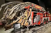 Other Ground Zero artifacts include wrecked emergency vehicles (including a fire engine deformed from the collapse); pieces of metal from all seven World Trade Center buildings; recordings of survivors and first responders (including 911 calls); pictures of all victims; photographs from the wreckage and other media detailing the destruction (including the crashes, collapse, fires, those who jumped, and the cleanup).[97] The museum is designed to evoke memories without additional distress, particularly to first responders and the victims’ families.[91]