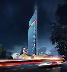 Roscosmos offices will be located in glass tower, with a total area of 250,000 square meters, which will be 200 meters in height, in a triangular rights tower with horizontal structures attached to it.[7]