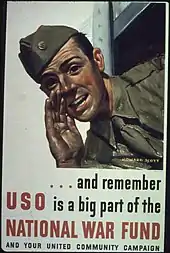 The National War Fund was the joint financing of war appeals during World War II for the United Service Organizations (USO), United Seamen's Service, and about twenty other overseas relief programs. The National War Fund operated from 1943 to 1947.